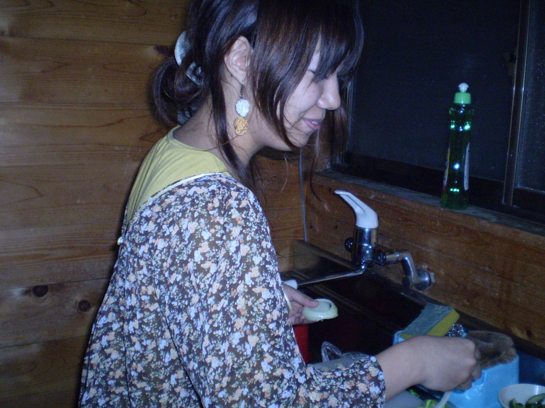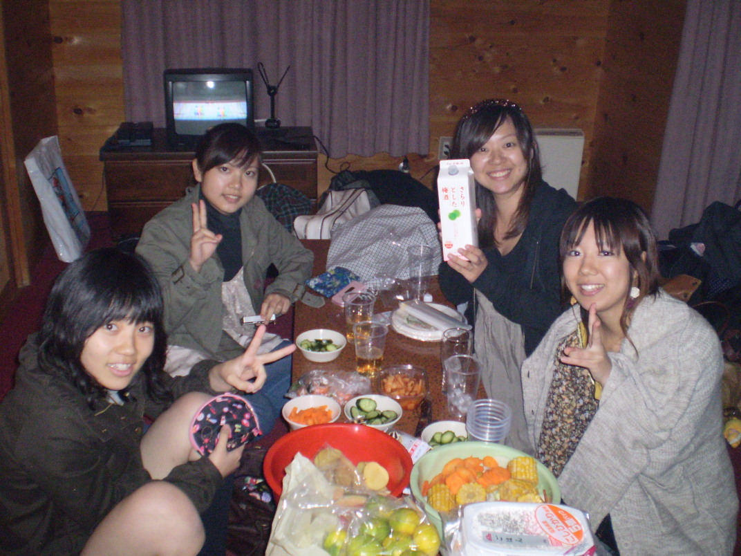 そして切るのが終わったらきゅうりの漬物片手に女の子だけで宴会開始♪