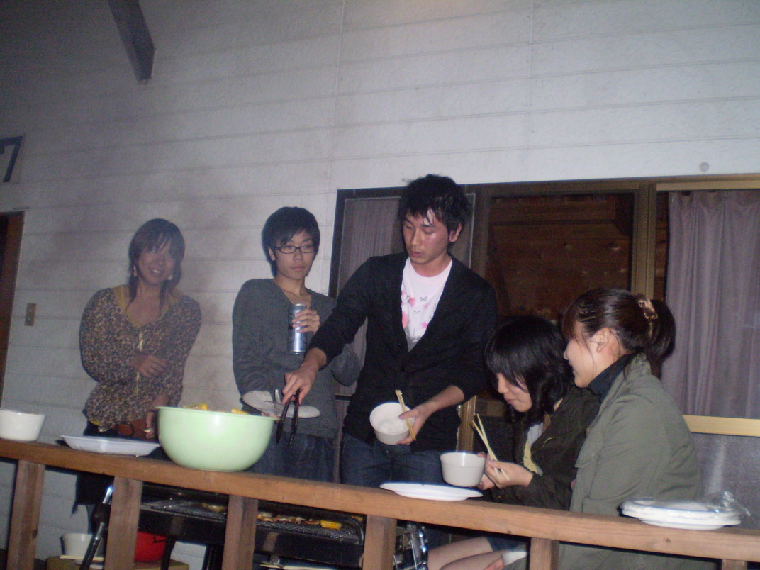 ようやく火がついて、みんなでBBQ開始☆